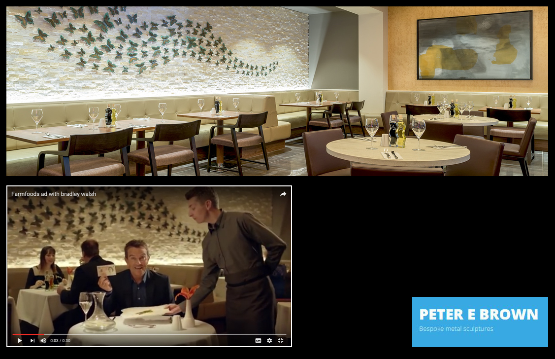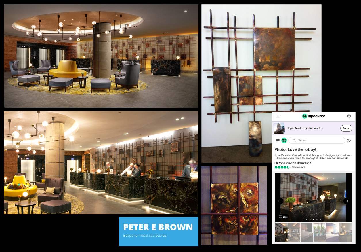 Peter E Brown is a U.K based sculptor whose career spans some 20 years. During this time Peter has completed a number of high end installations which can be found in five star hotels, bars and casinos the world over.Importanly, The work is always well received by the patrons as can be seen in this review that recently popped up on trip advisor. This, together with high street visual merchandising, Public Art Projects and a number of commissions for private houses, demonstrates Peter’s varied portfolio and skills in both casting and fabricating of ferrous and non-ferrous materials.